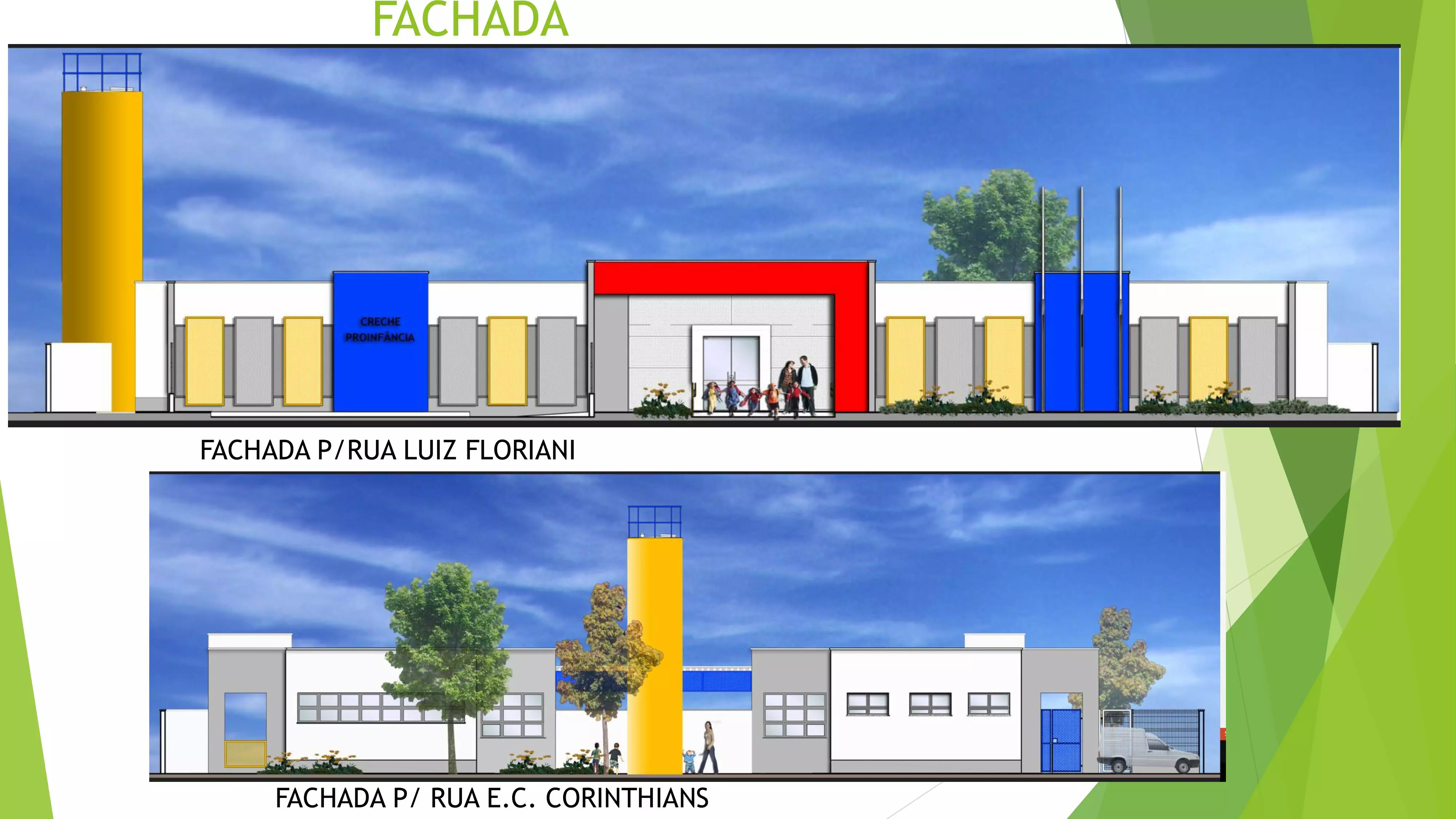 O novo CEIM Girassol será construído na rua Luis Floriani Júnior esquina com a rua Esporte Clube Corinthians. O projeto contempla os ambientes de sala maternal, berçário, pré-escola, cozinha, refeitório, além de pátio coberto e playground, com uma área total de 891,68 m².