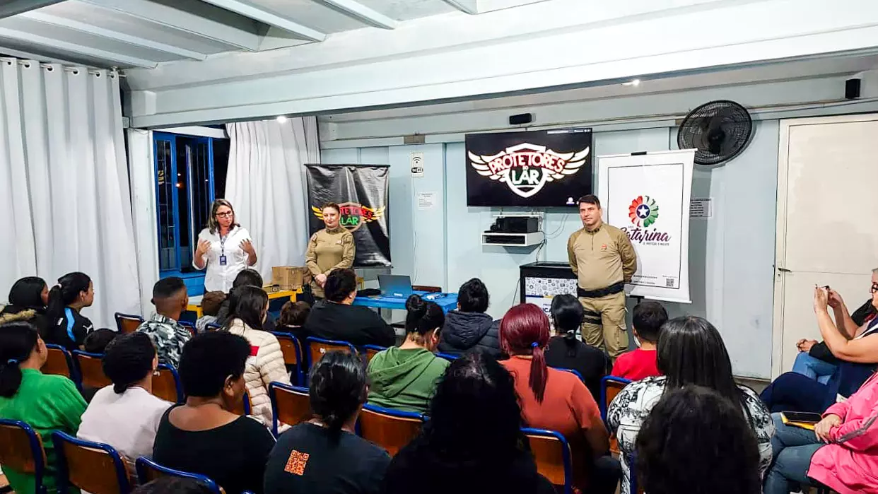 Os estudantes da Educação de Jovens e Adultos (EJA) do Sistema Municipal de Educação vêm participando do ciclo de palestras e atividades do Programa Protetores do Lar. Os primeiros encontros do programa já ocorreram nas Escolas Municipais de Educação Básica (Emebs) Aline Giovana Schmitt, localizada no bairro Guarujá, e Nossa Senhora dos Prazeres, no bairro Santa Catarina, nos dias 14 e 15 de abril, respectivamente. O próximo polo da EJA a receber o projeto é a Emeb Mutirão, no bairro Habitação, no dia 12 de maio.