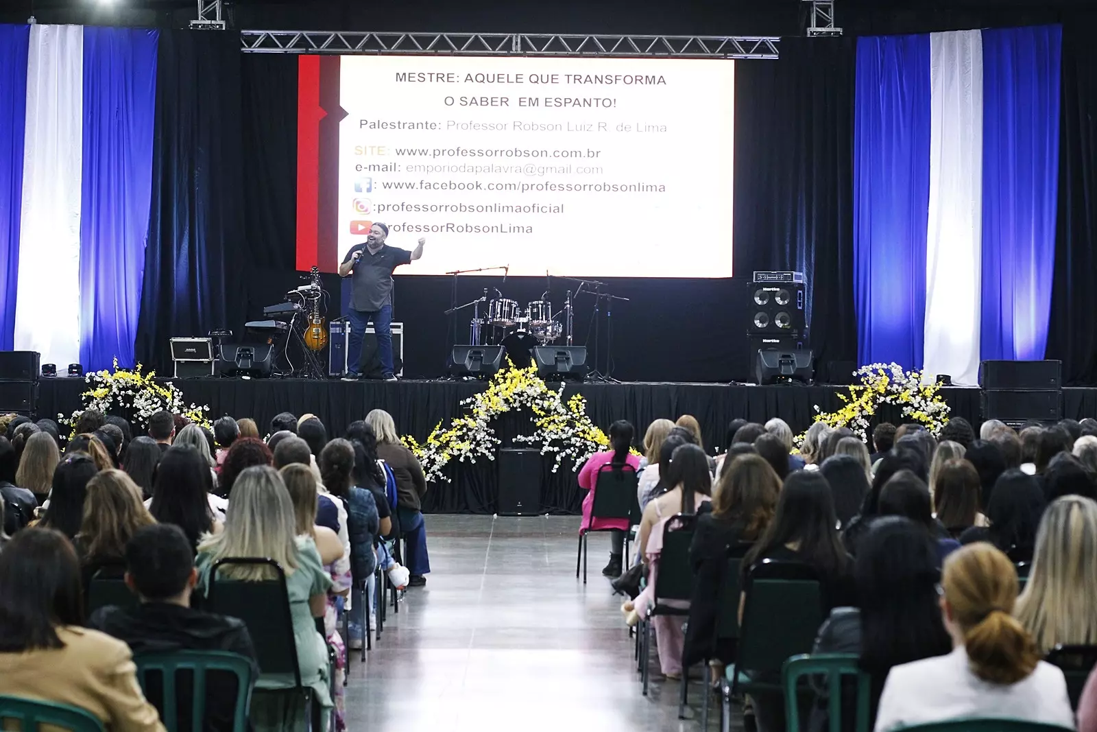 O evento abriu com a palestra intitulada “Mestre, Aquele que Transforma o Saber em Espanto: Reconhecer para Inspirar”, ministrada pelo professor especialista em Língua Portuguesa, Robson Lima. Na sequência, a banda Neo Brazil, com uma mistura de ritmos, cativou os professores a dançar.