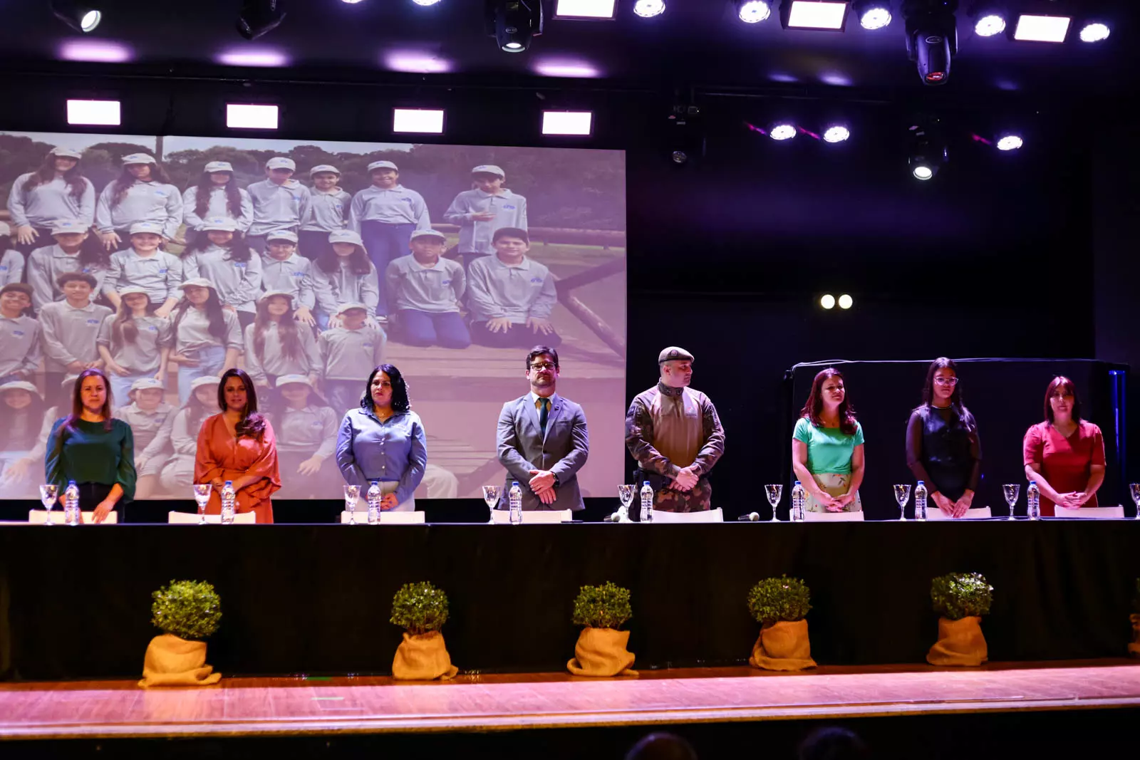 A Secretaria de Serviços Públicos realizou, na noite de quarta-feira (3 de dezembro), a formatura da terceira turma do projeto Guarda Mirim do Parque. A cerimônia ocorreu no anfiteatro do Centro Universitário Catarinense (Unifacvest). As atividades formativas foram desenvolvidas ao longo do ano letivo no Parque Natural Municipal e também nas dependências das Escolas Municipais de Educação Básica (Emebs) Pedro Cândido e Professor Eduardo Pedro Amaral.