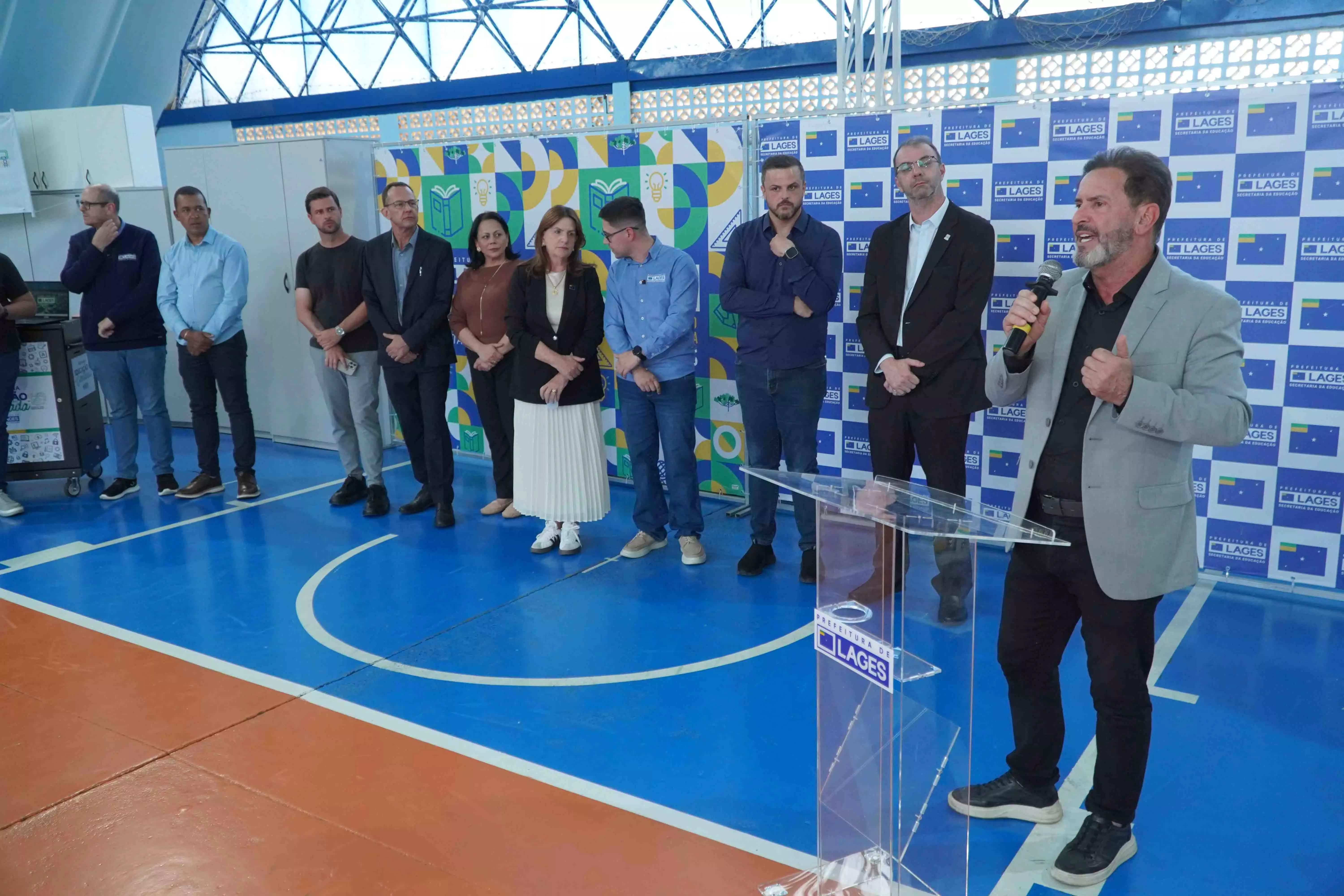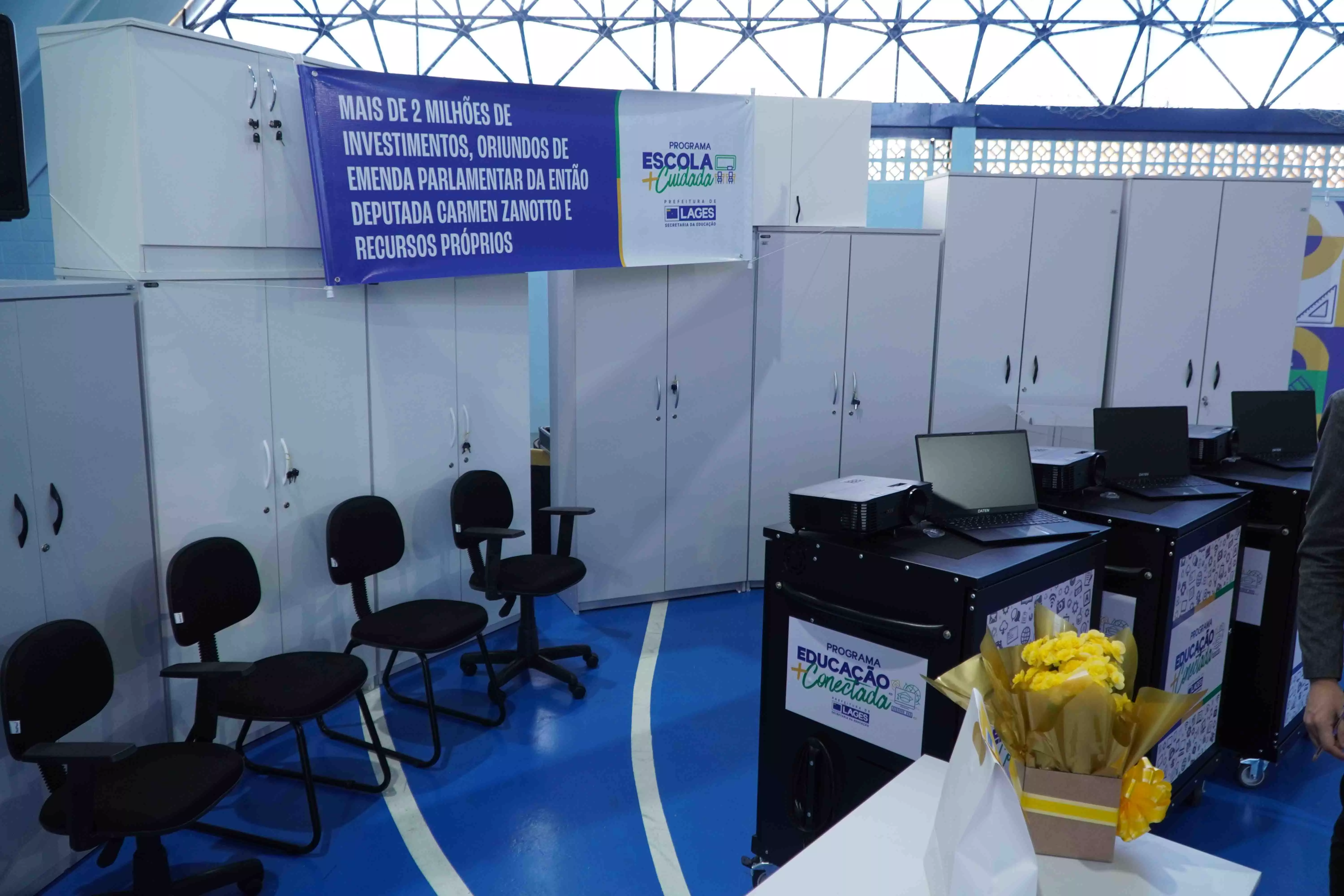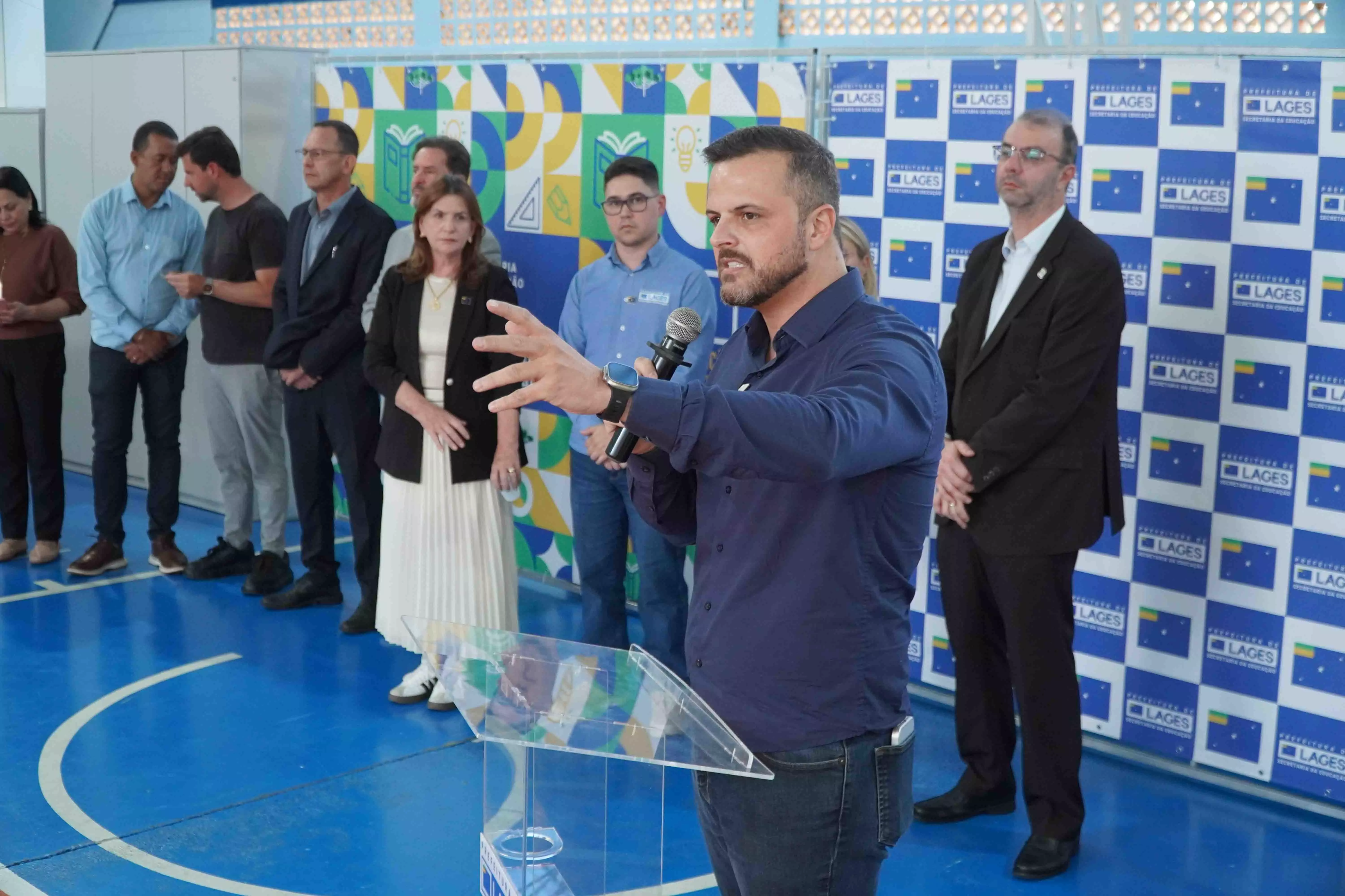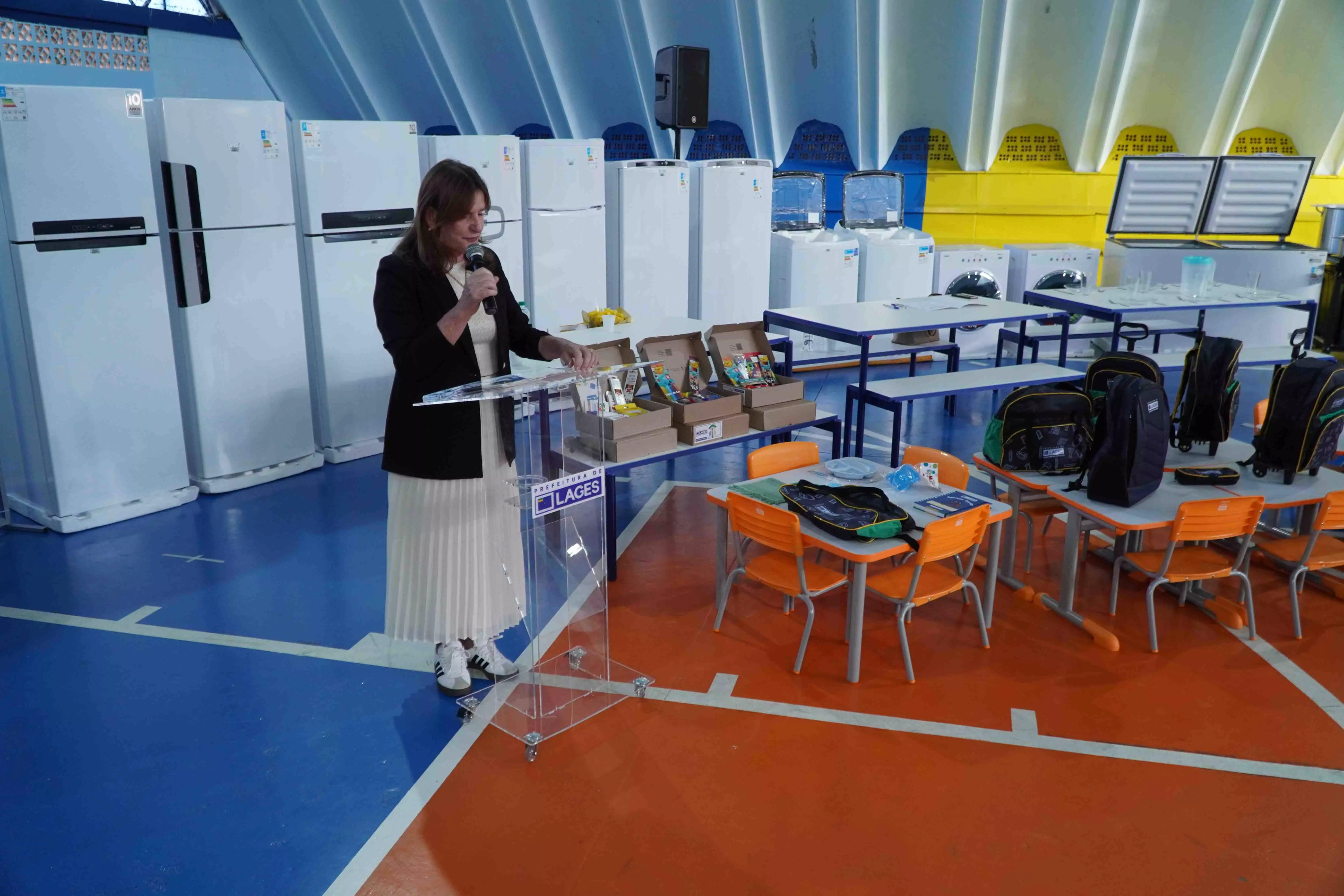 A Prefeitura de Lages, por intermédio da Secretaria Municipal da Educação, realizou na tarde desta sexta-feira (10 de abril) o ato simbólico de entrega de mais de três mil itens, entre equipamentos de cozinha, eletrodomésticos e mobiliário escolar, para as unidades de ensino municipais. A cerimônia foi realizada no ginásio da Escola Municipal de Educação Básica (Emeb) Nossa Senhora dos Prazeres, localizada no bairro Santa Catarina, e integra o Programa Escola + Cuidada.