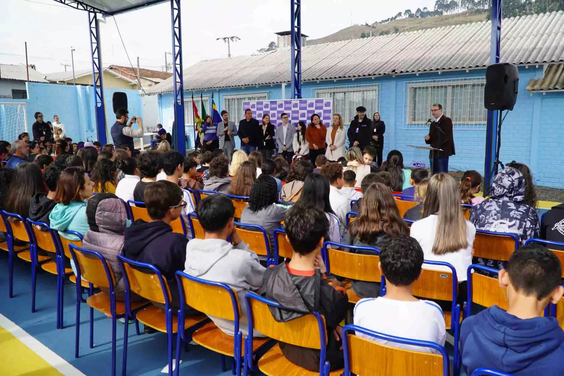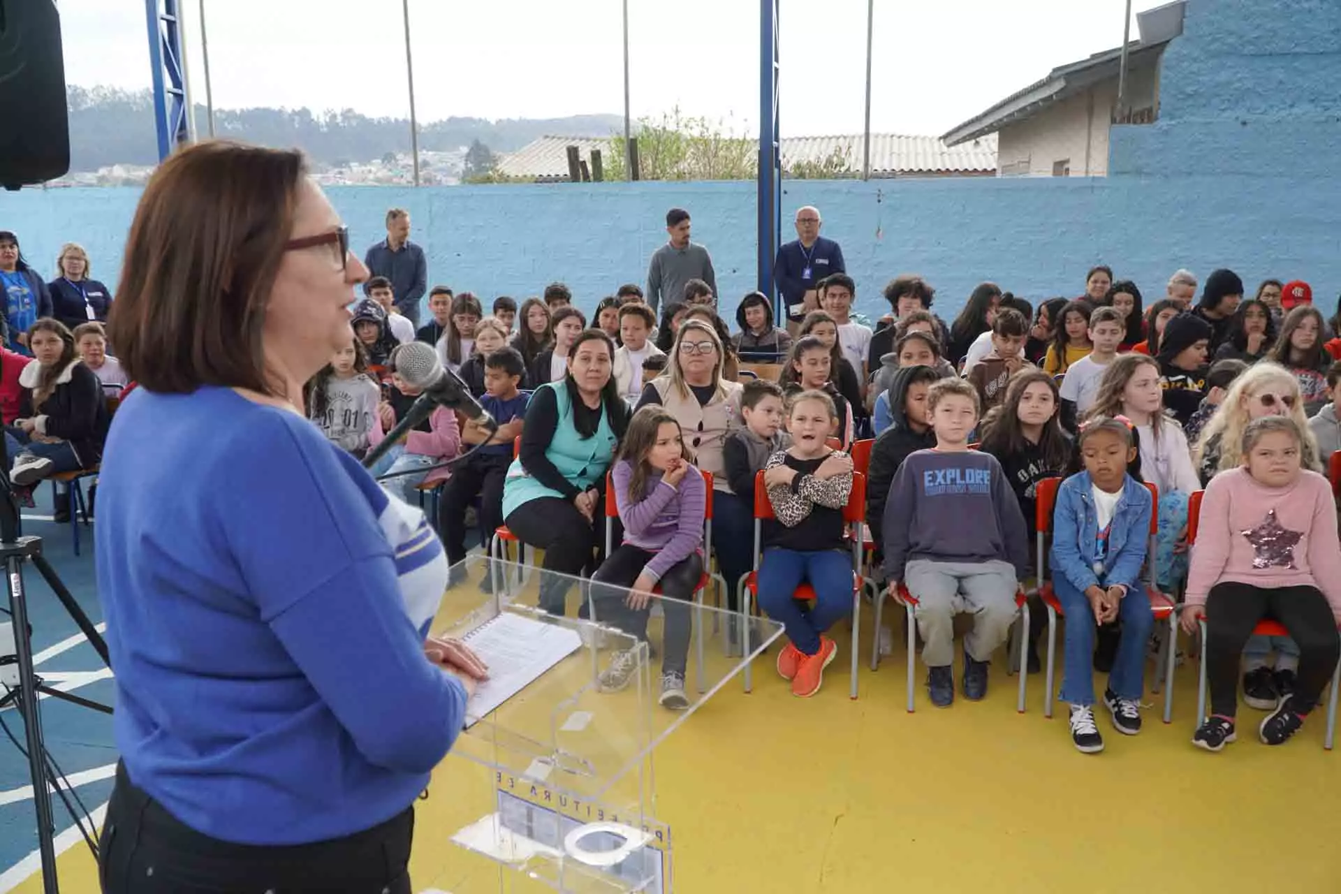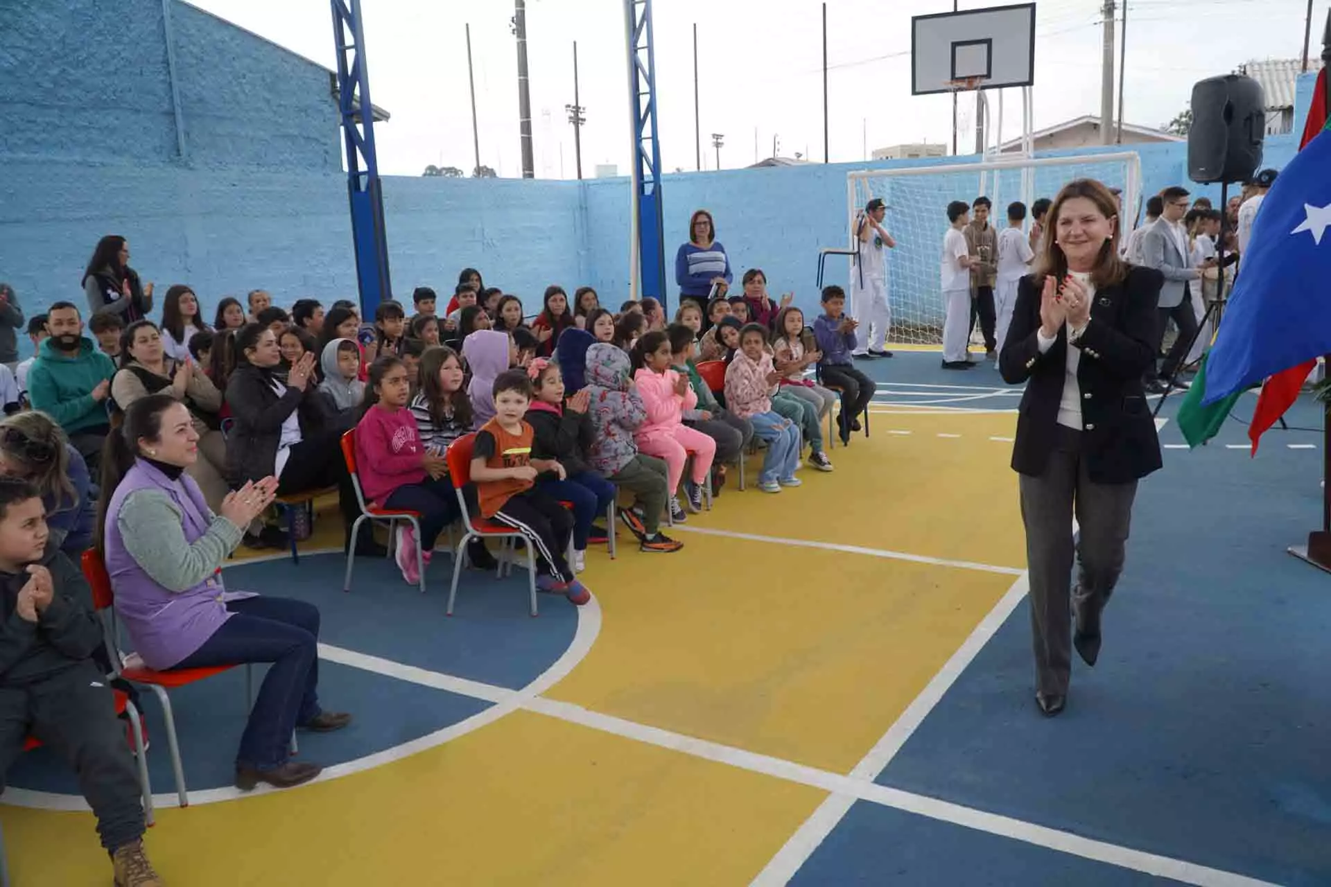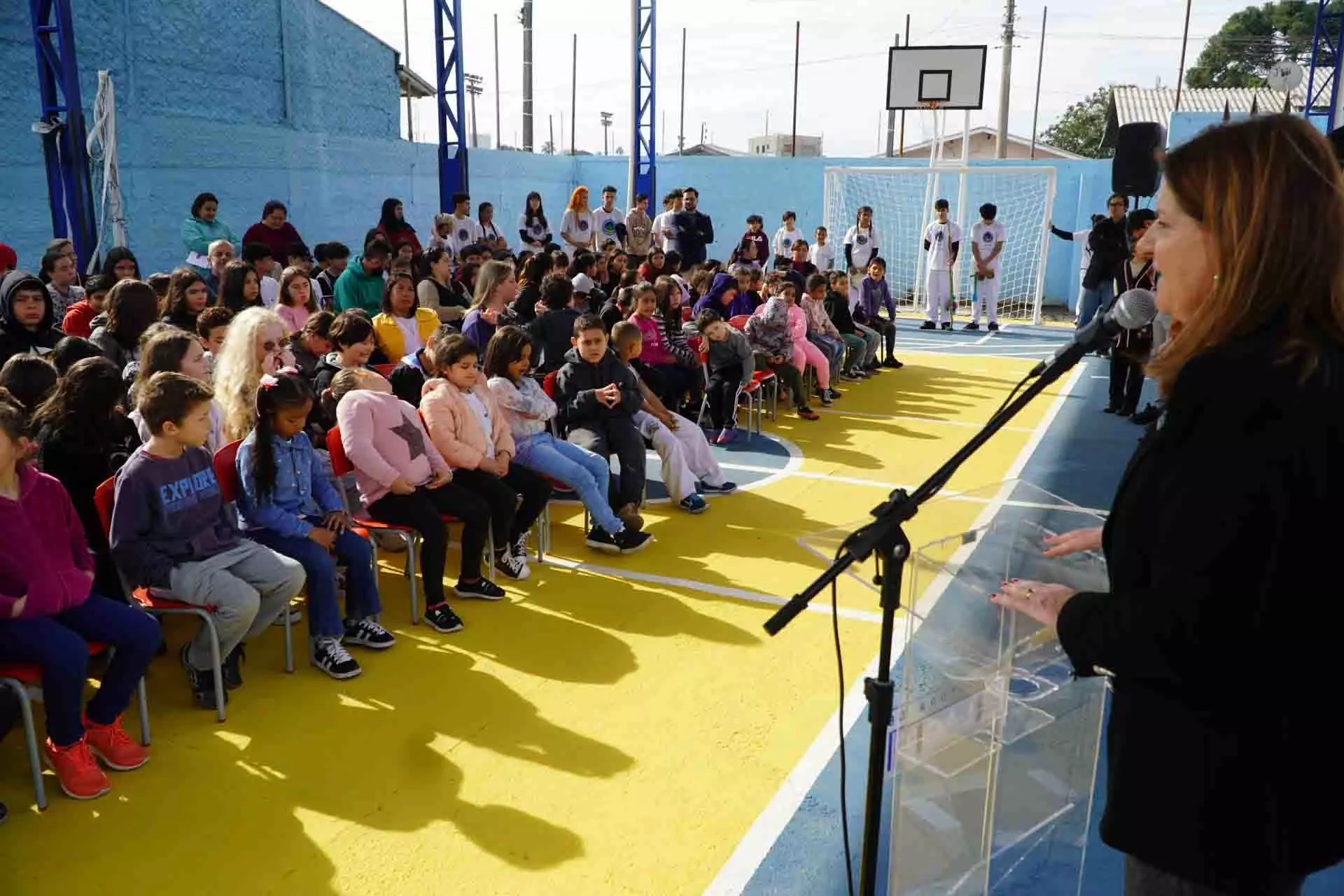A prefeita Carmen Zanotto valorizou os professores da educação municipal e realçou os benefícios do novo espaço. “Além do esporte, a nova quadra servirá também para as aulas do nosso programa de contraturno, o Escola em Movimento. Temos condições de ter, aqui em Lages, a melhor educação pública do estado de Santa Catarina. Temos todas as condições de melhorar os nossos indicadores educacionais porque nossos professores são qualificados e nossos alunos interessados” realçou a prefeita Carmen.