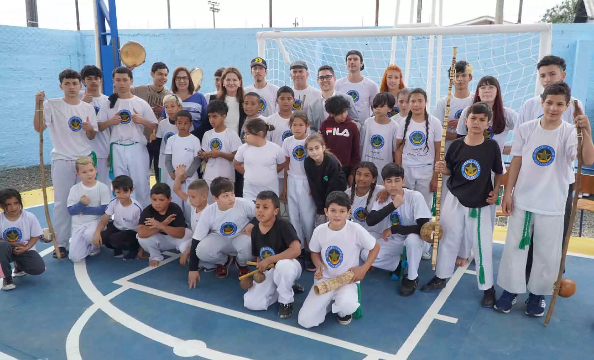 As melhorias incluem a execução da cobertura, pintura da quadra, restauração do muro, revitalização dos equipamentos esportivos, instalação de alambrado e refletores, além da aquisição de equipamentos para a prática de voleibol.