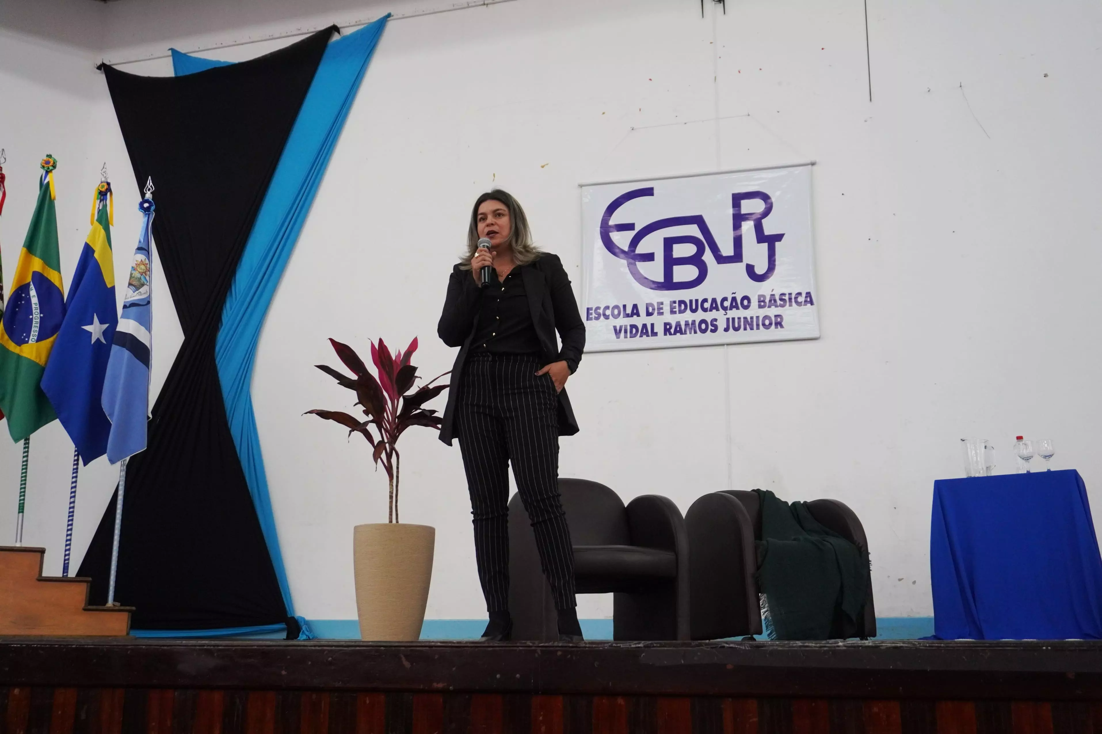 Encontro realizado no auditório da Escola de Educação Básica (E.E.B.) Vidal Ramos Júnior reuniu cerca de 700 educadores