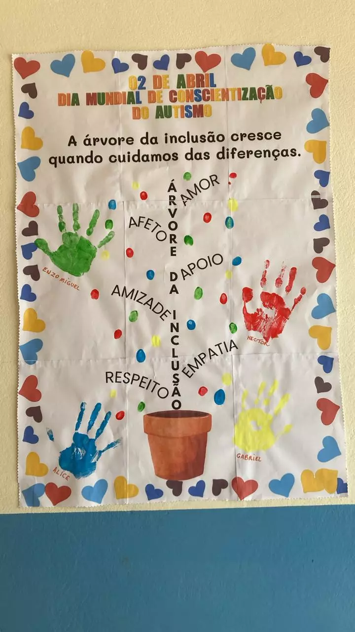 As Escolas Municipais de Educação Básica (Emebs) Belizária Rodrigues, no bairro Maria Luiza; Anjo da Guarda, no bairro Sagrado Coração de Jesus; Aline Giovana Schmitt, no bairro Guarujá; Professor Antônio Joaquim Henriques, bairro Centenário; Suzana Albino França, bairro Jardim Panorâmico; Mutirão, bairro Habitação; e Emeb Professor Trajano, no bairro Conta Dinheiro, também realizaram atividades em alusão ao Abril Azul.