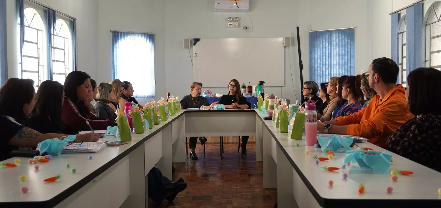 A formação também tratou do Plano Educacional Individualizado (PEI), documento que define estratégias e ações para atender as necessidades específicas de cada estudante. O Atendimento Educacional Especializado (AEE) realiza ações de atendimento especial e individualizado a crianças e estudantes com algum tipo de deficiência ou condição, colaborando para uma maior inclusão dentro do ambiente escolar. O AEE atende, na sua maioria, crianças portadoras do Transtorno do Espectro Autista (TEA), mas o trabalho nas Unidades de Ensino também engloba outras condições que podem limitar o processo de aprendizagem.