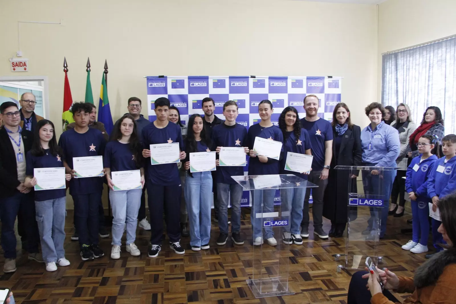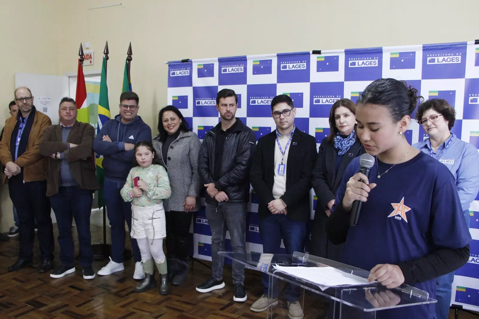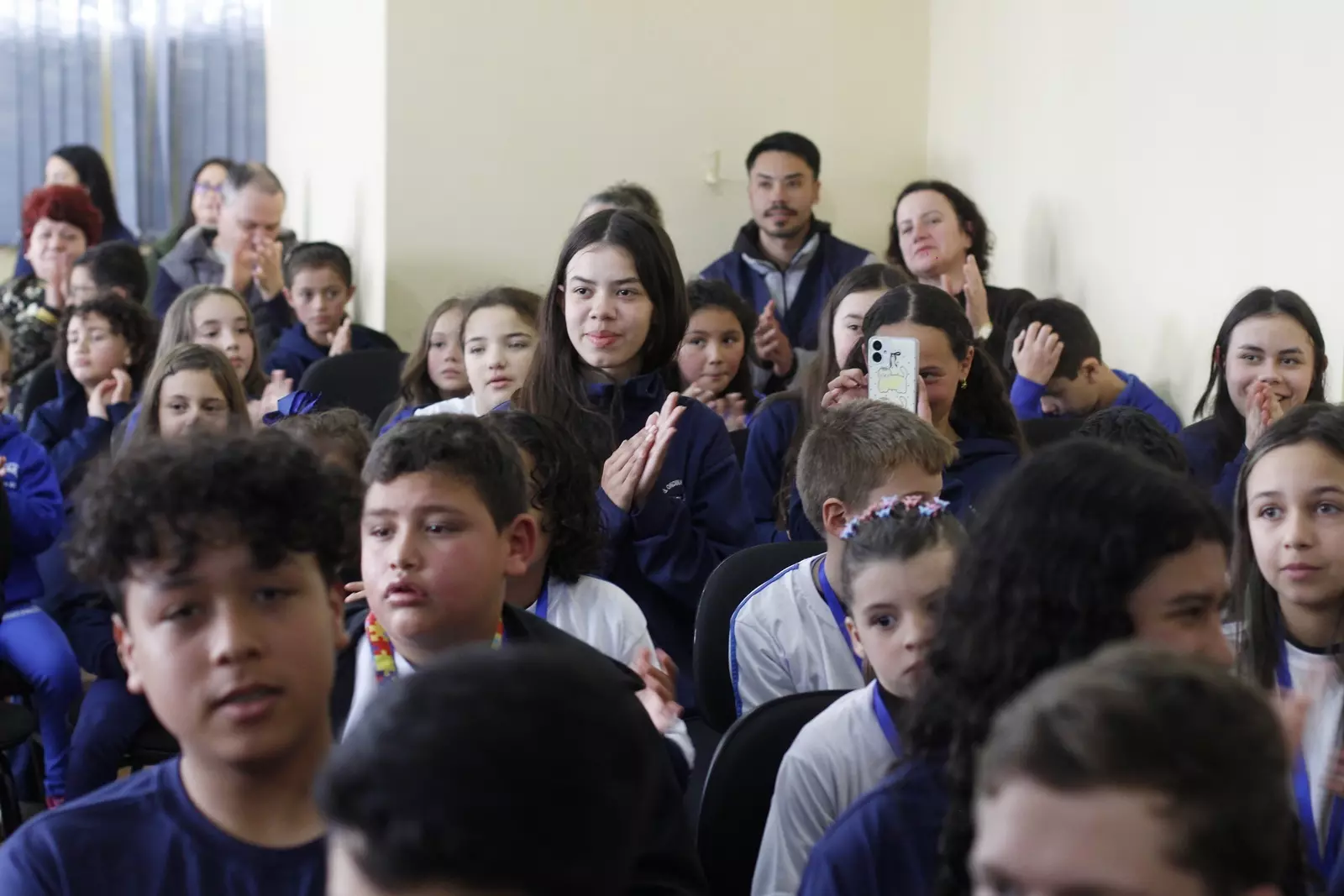 Grêmios estudantis das Escolas Municipais de Educação Básica (Emebs) Suzana Albino França, Ondina Neves Bleyer e Nossa Senhora da Penha tomaram posse para um mandato de dois anos, no período de 2025 até 2027. Também tomaram posse as comissões de estudantes das escolas-piloto, Emebs Hermínio P. Júnior, Juscelino Kubitschek e São Vicente
